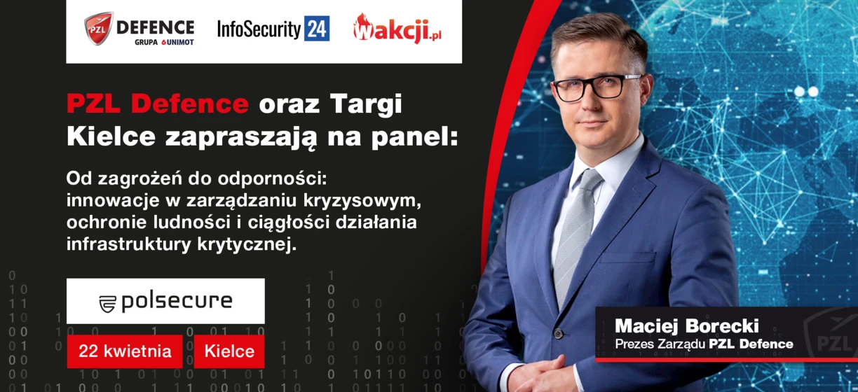 Podczas targów POLSECURE 2026, które odbędą się w dniach 22–24 kwietnia w Kielcach, zaplanowano panel ekspercki poświęcony wyzwaniom w obszarze bezpieczeństwa i zarządzania kryzysowego. Dyskusja, organizowana przez Targi Kielce oraz PZL Defence, odbędzie się 22 kwietnia w godzinach 9:00–11:00 pod nazwą: „Od zagrożeń do odporności: innowacje w zarządzaniu kryzysowym, ochronie ludności i ciągłości działania infrastruktury krytycznej”.