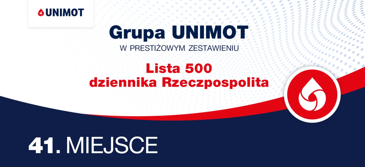 Grupa UNIMOT zajęła 41. miejsce w tegorocznej edycji Listy 500 dziennika „Rzeczpospolita” – prestiżowego zestawienia największych przedsiębiorstw w Polsce, klasyfikowanych według wysokości przychodów ze sprzedaży. Awans z 46. miejsca potwierdza skuteczność konsekwentnie realizowanej strategii biznesowej oraz wzrost skali działalności Grupy.