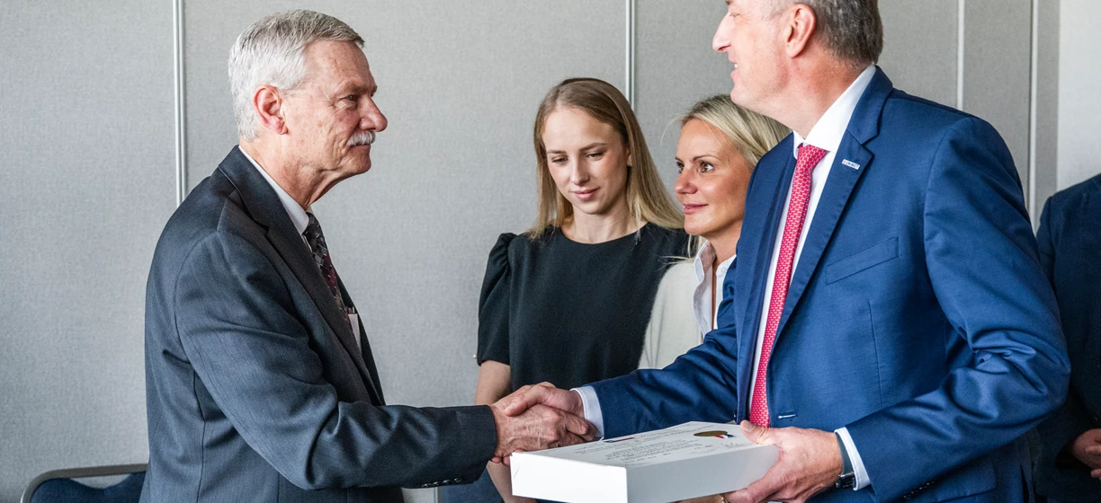 W wyrazie uznania prof. Jim Mazurkiewicz wręczył prezesowi Adamowi Sikorskiemu flagę Teksasu jako symbol współpracy polsko-amerykańskiej, a także symboliczne potwierdzenie przystąpienia UNIMOT do Polskiej Izby Handlowej w Teksasie.