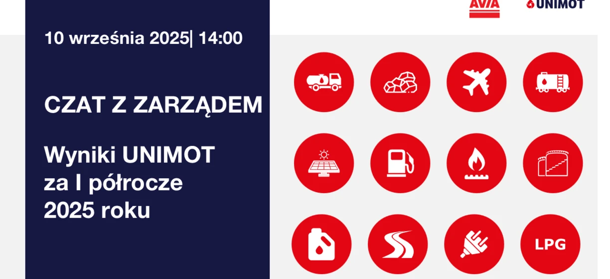 Zapraszamy na czat inwestorski z Filipem Kuropatwą, wiceprezesem zarządu UNIMOT ds. finansowych. Spotkanie będzie poświęcone omówieniu wyników finansowych spółki za I półrocze 2025 roku.